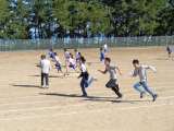グラウンドいっぱいに12コースつくり、一斉にスタート。みんな力の限りを出し切っ...