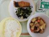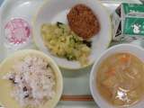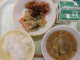 今日の給食の献立は、 ・赤飯 ・とんかつ ・コーン和え ・味噌汁 ・さくらゼリー...