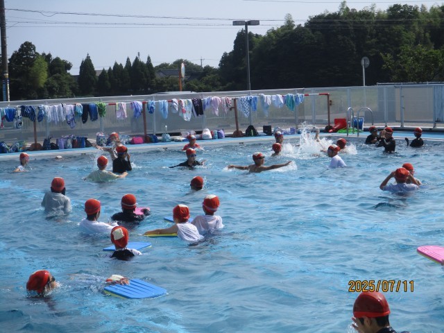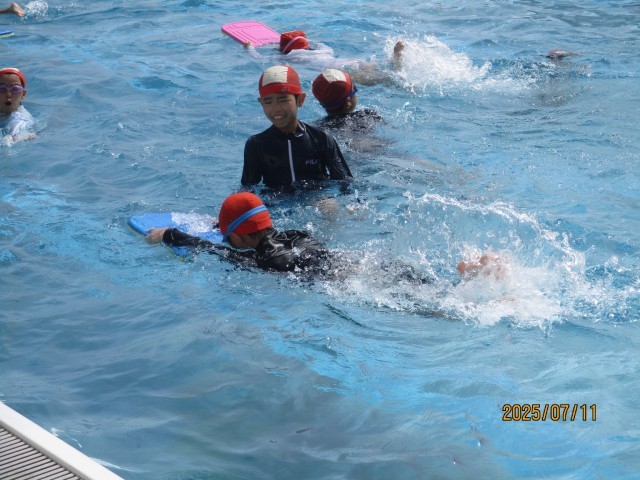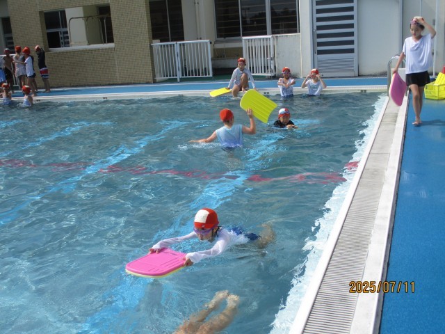 「泳げるようになりたい」と、面かぶりやビート板を使って息継ぎの練習に取り組んでいます。