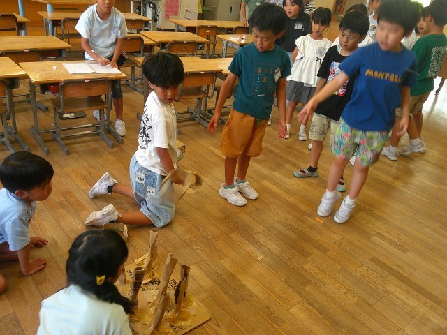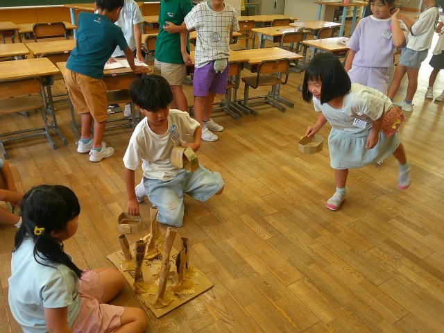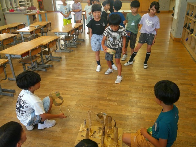 お楽しみ会でわなげ係さんが楽しいわなげをつくり、