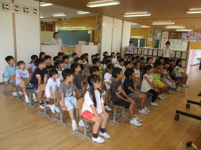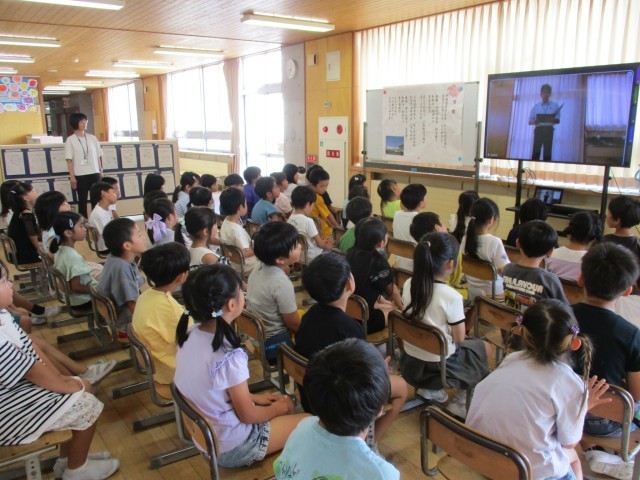 1年生は、初めての終業式に参加しました。今日は欠席も無く、みんな元気に登校しました。終業式は、リモートで行いました。話している人の方をしっかりと見て、終わりまで聞くことができました。