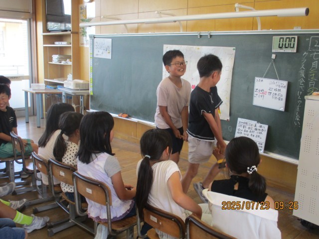 1学期末のクラス集会を行いました。各係ごとのプログラムがとても楽しく、最初から最後まで笑顔いっぱいの集会になりました。
