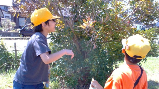 図画工作科「お気に入りの葉」の学習で、学校のまわりにある葉を探しに行きました。色、形、大きさなどから自分の気に入った葉を見付け、嬉しそうに集める子供たちでした。集めた葉を使ってどんな作品に仕上がるか、今から楽しみです。