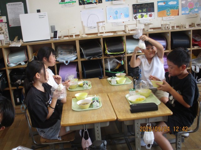 今日の給食は、みんな楽しみにしていた「セルフおにぎり」でした。