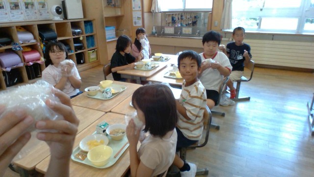 自分で作ったおにぎりは、とてもおいしかったようです。