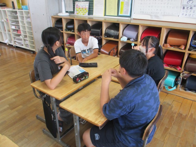 すきまの時間でフリートークをしています。今日のテーマは、「好きなスポーツ」でした。たくさん話して、相手のことを知ったり、話す力を高めたりしてほしいです。