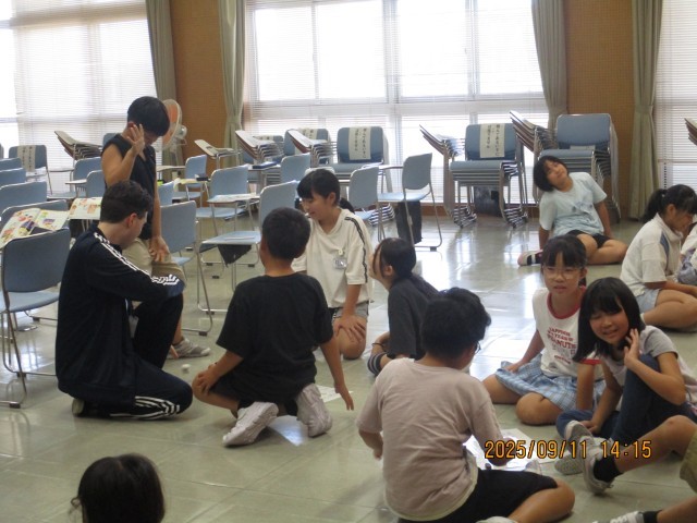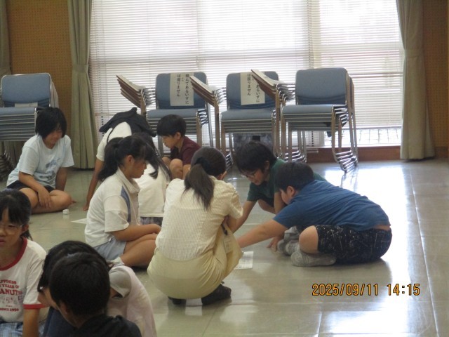 外国語の授業で英語のすごろくを楽しんでいるところです。ジョン先生も入っていただき、かなり盛り上がっていました。
