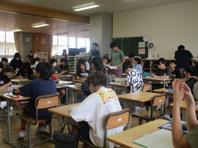武士はいつから登場したのか。源氏と平氏とは何か。先生の話を真剣に聞いていました。
