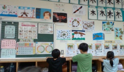 図画工作科「お気に入りの葉」の学習のまとめとして、友達の作品をじっくり鑑賞しました。