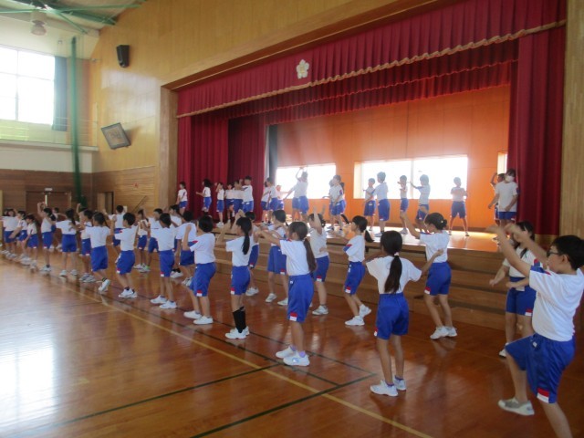学習発表会の練習に励んでいます。4年生のテーマは「絆」