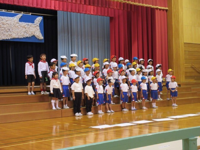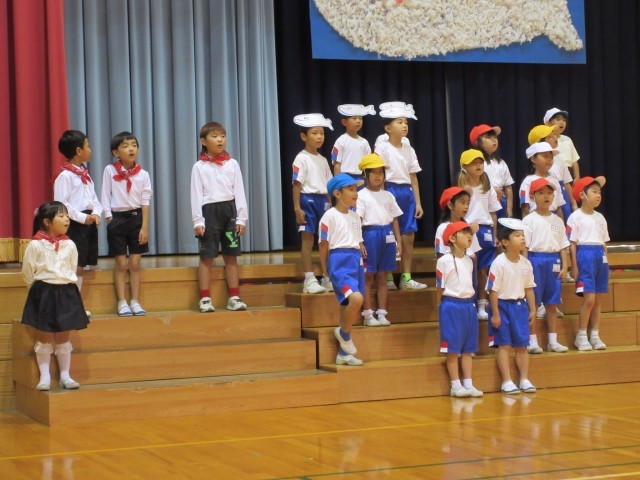 国語科で学習した「くじらぐも」を歌や演技でかわいらしく表現しました。