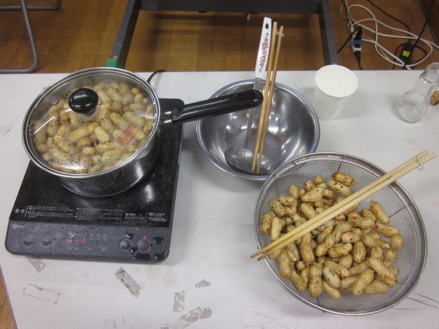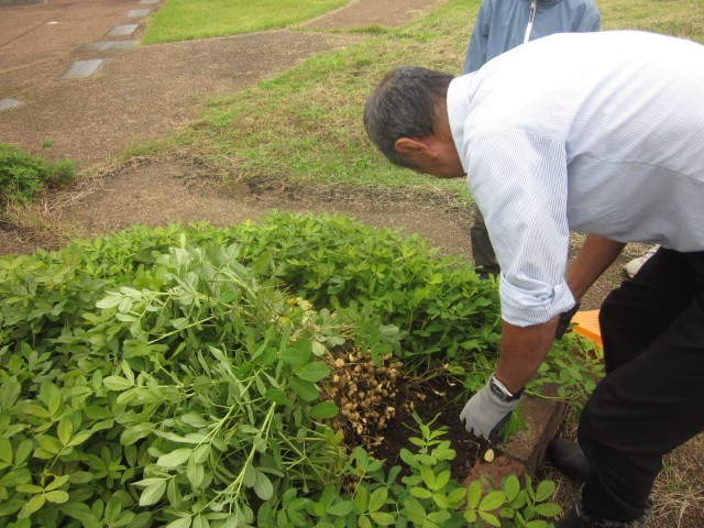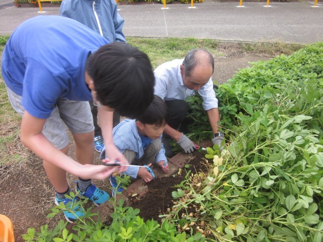 4月に種を植えた落花生の試し掘りをしました。収穫した落花生は塩ゆでにして食べました。新鮮な落花生はとてもおいしいです。