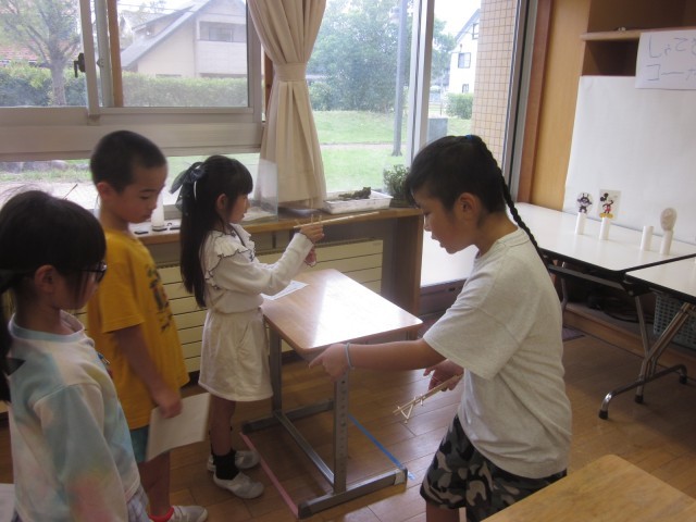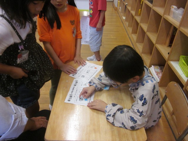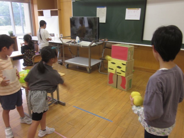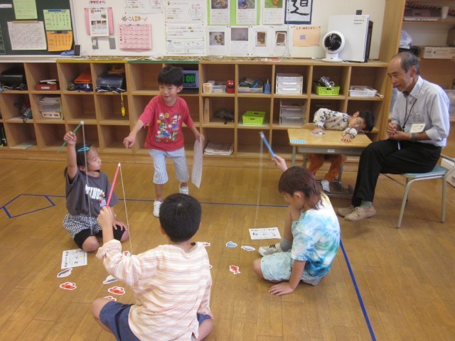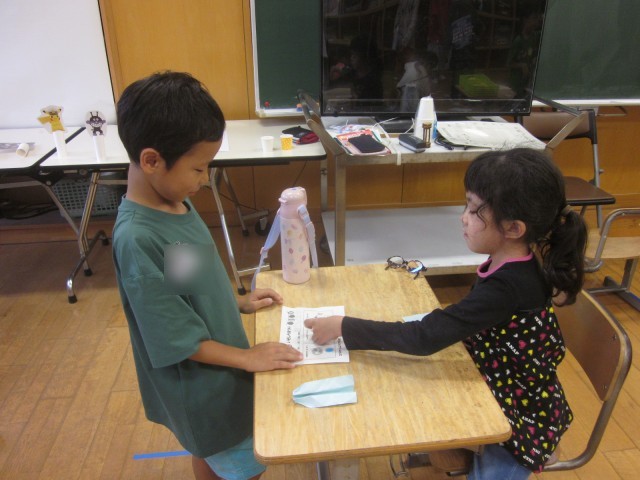 いそなみ級としらゆき級の子供たちが企画・準備をしたお祭り「いそしら祭り」が行われました。1年生を招待して、まとあて、射的、魚釣りのゲームをしました。「楽しい」「また来たい」と楽しむ1年生の姿に、いそなみ級としらゆき級の子供たちは達成感を味わっていました。