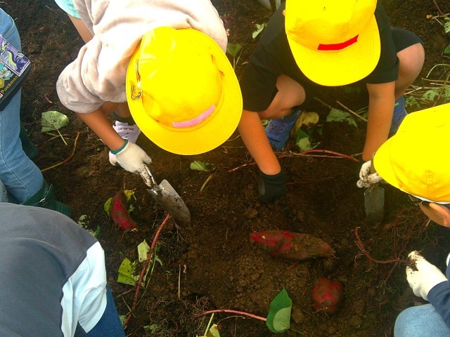 2年生でお世話をしている畑で、サツマイモ掘りをしました。