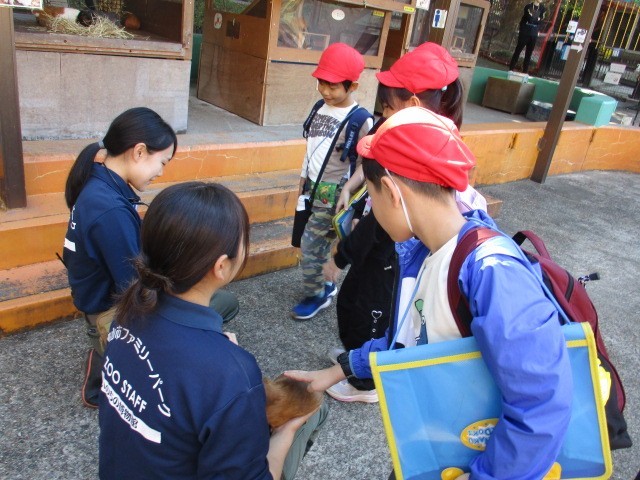 グループで動物にふれあう体験もしました。いろんな動物に出会って楽しそうでした。