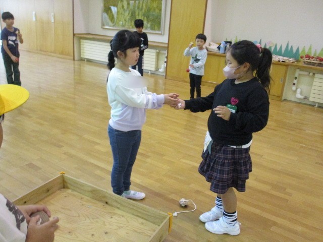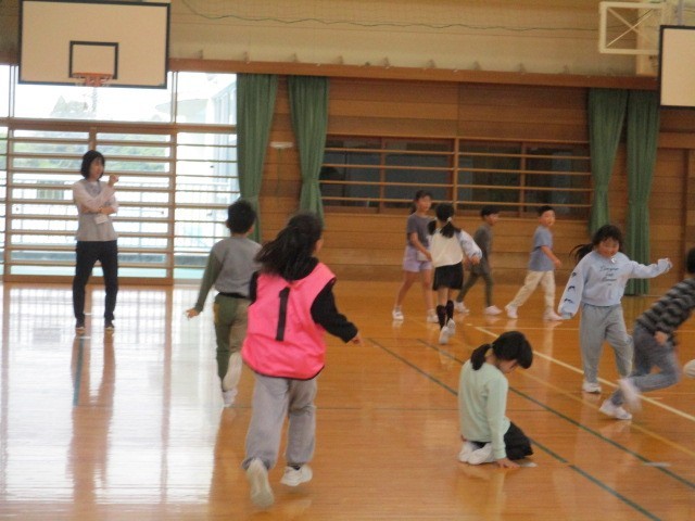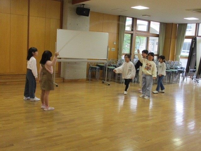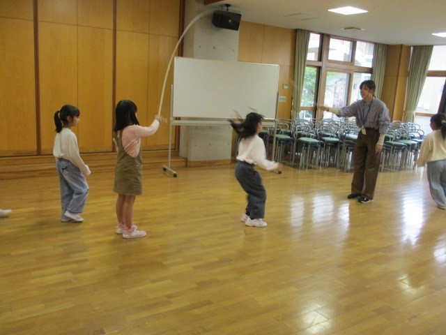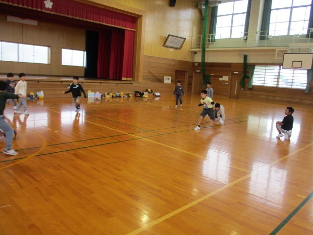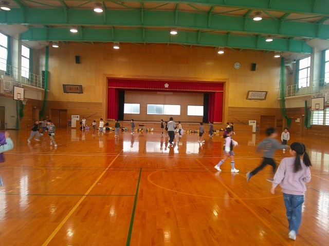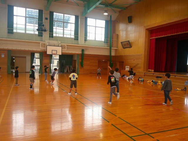 バスに乗って、校区巡りをした後は、大広田小学校に来てみんなで遊びました。アリーナでは、ドッジボールや鬼ごっこ、ランチルームでは、長なわとびや、けん玉・こま遊びと、自分の好きな遊びを選んで活動しました。「新しい友達ができたよ」「一緒に遊べてうれしかったよ」と大喜びでした。