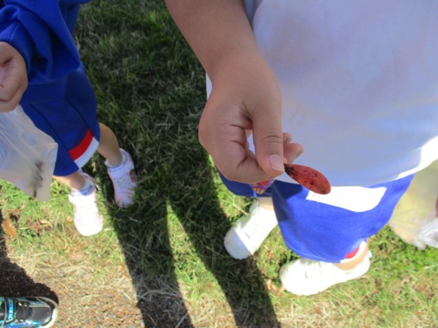 生活科の「あきをたのしもう」を、1年生みんなで学習しています。今日は、課題の「学校の庭で秋を見つけよう」に取り組みました。きれいな色の葉っぱ、ころっと丸いどんぐり等、たくさんの秋を見つけました。これからどうしたいかなと尋ねると、「公園などにもっとたくさん集めに行きたい」「何か作りたい」「集めたもので遊びたい」と、やりたいことがどんどん広がっていました。