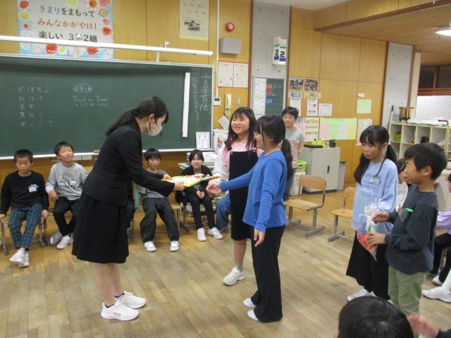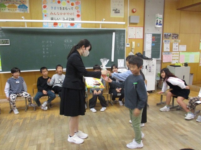 主に3年生のクラスで過ごしてくださっていたので、子供たちと相談をしてゲームやプレゼントを考え、感謝の気持ちを伝えることができました。