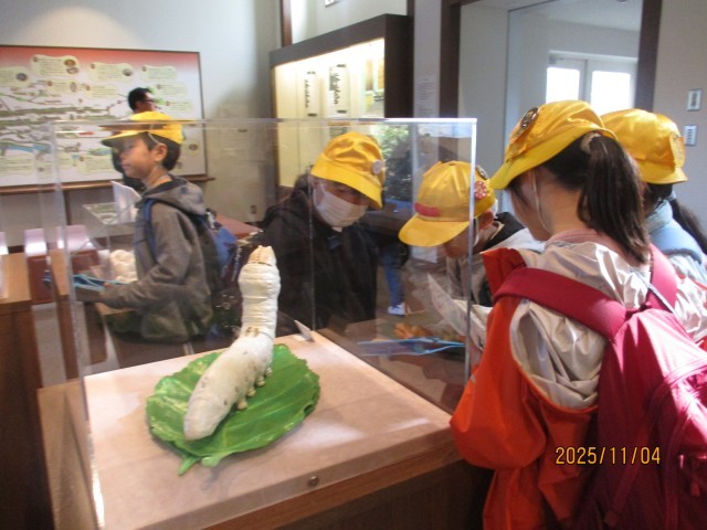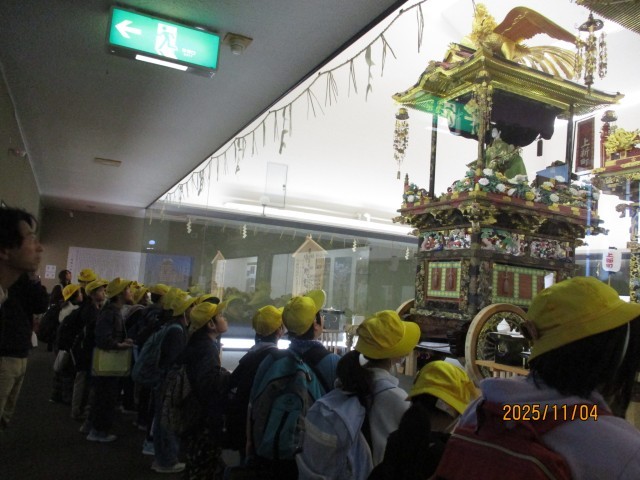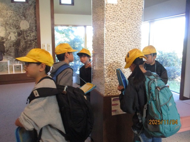 曳山会館に行き、実物の「曳山」や、豪華な曳山の資金源であった「養蚕業」の見学をしました。社会科で学習したことを実際に見たり、体験したりすることで、より理解が深まっているようでした。