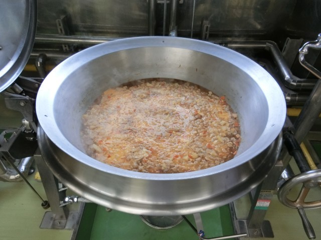 今日の献立は、ごはん、牛乳、あじフライ、ゆかり和え、卵とじです。