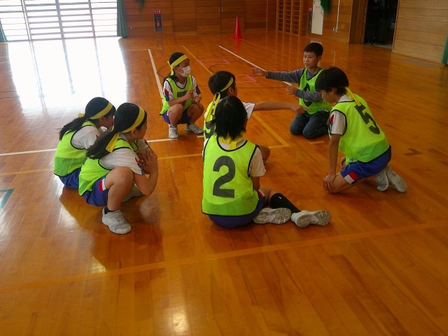 体育科の学習で「3X2」という学習をしています。チームごとに、どうやったら点につながるか考え、チームの課題を達成するために練習を選んだり、アレンジを加えて練習したりしています。雰囲気も良く、ゲームも白熱してきました。もっともっと、みんなでつないで得点ゲットを目指しましょう。