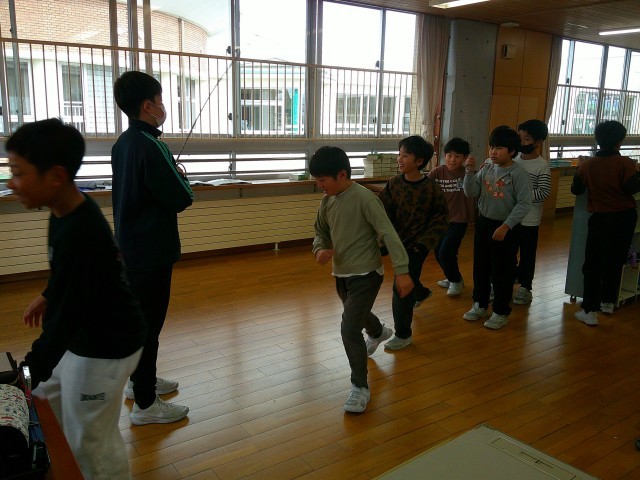 女子が長縄で記録更新する姿を見て、男子も始めました。みんなで高まり合うことができそうです。