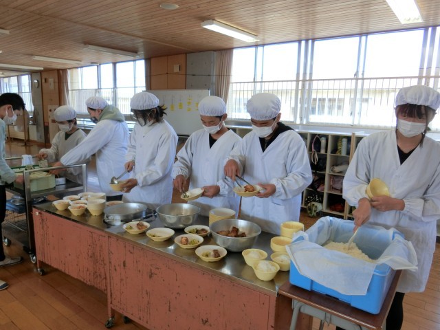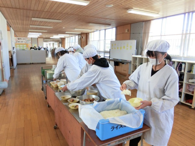 給食当番が素早く準備してくれます。