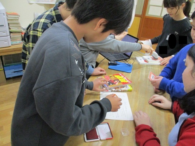 図書委員会では、読書の秋企画パート2で「図書ビンゴ」を始めました。いろいろなジャンルの本を読んで、ビンゴを達成して楽しんでもらおうと計画しました。初日の今日は、たくさんの人が本を借りにきてくれました。今まであまり読んだことのないジャンルの本にもチャレンジしてほしいです。