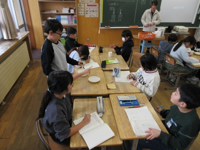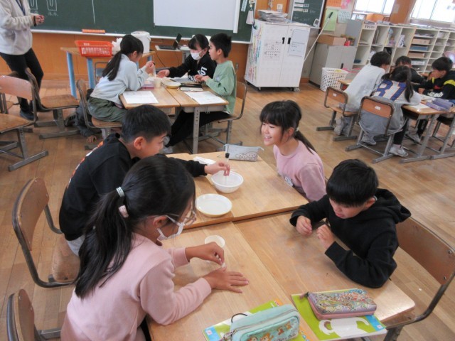 理科の学習で、水が温まるとどのような変化があるかを実験して確かめています。