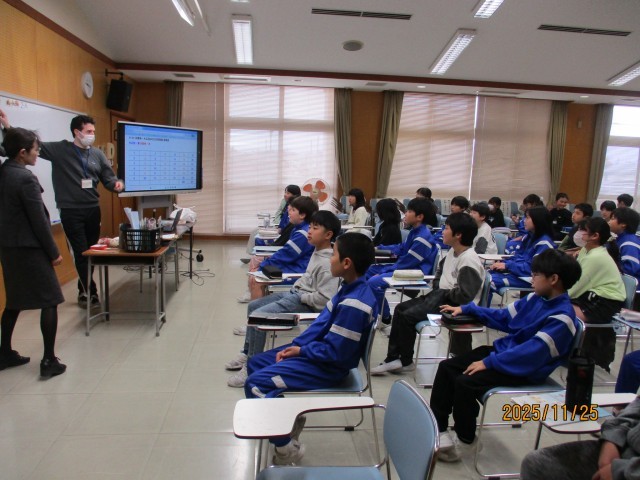今日は、浜黒崎小学校の友達と一緒に「外国語」を学習しました。