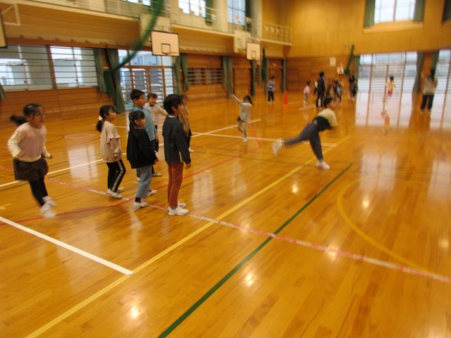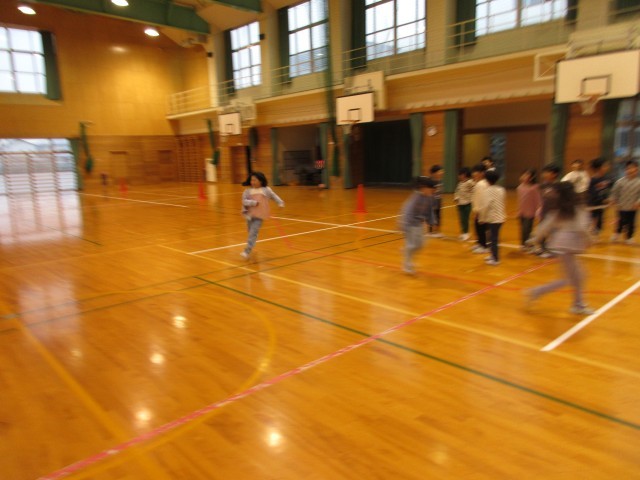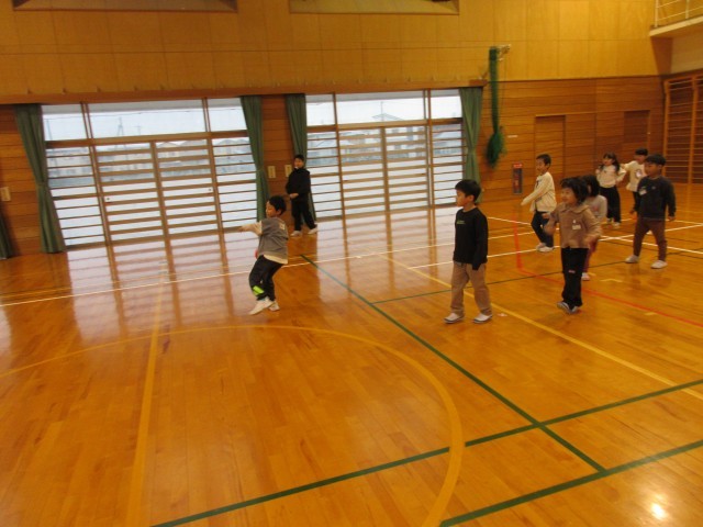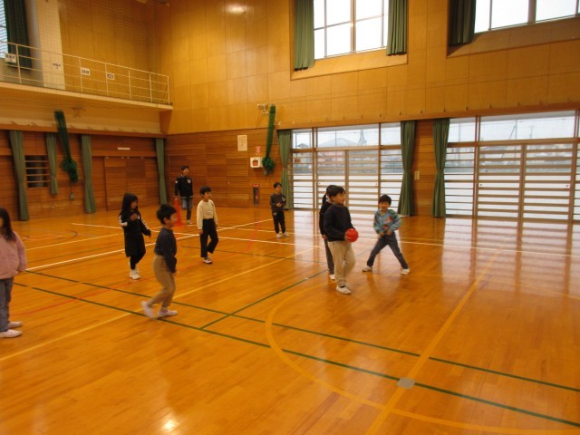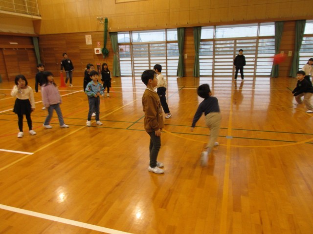 今日は1年生が朝の体力つくりでドッジボールを行いました。