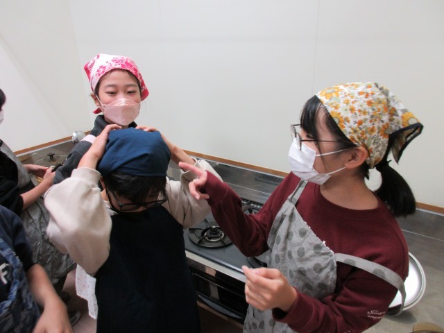 家庭科の調理実習で、米を炊いて味噌汁を作りました。