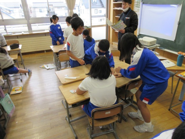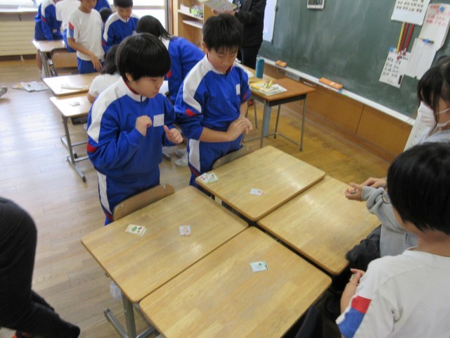 社会科の学習でカルタを使いながら地域の特産品などについて学習しています。