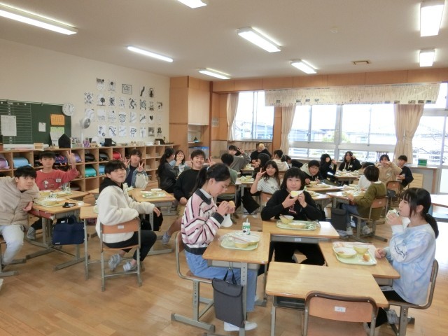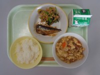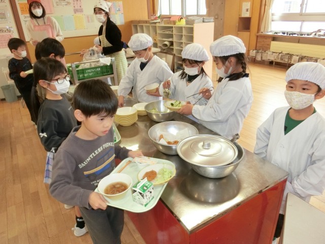 主菜とデザートを自分で選ぶ「選択献立」でした。クラスで協力しながら、配膳していました。
