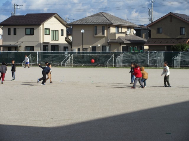 外は寒いですが、天気がよいので元気に外遊びです。