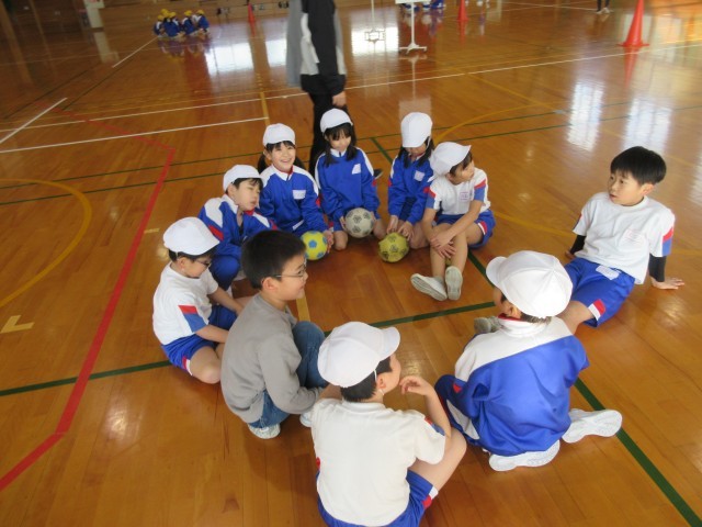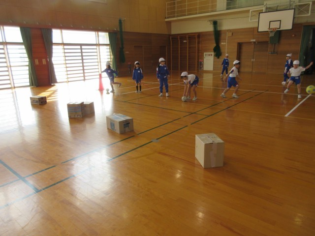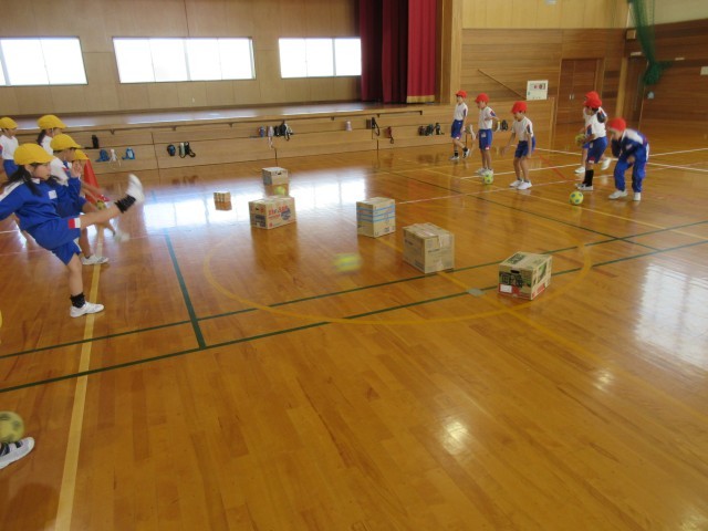 ボールけり遊びで、作戦を考え一生懸命取り組んでいます。