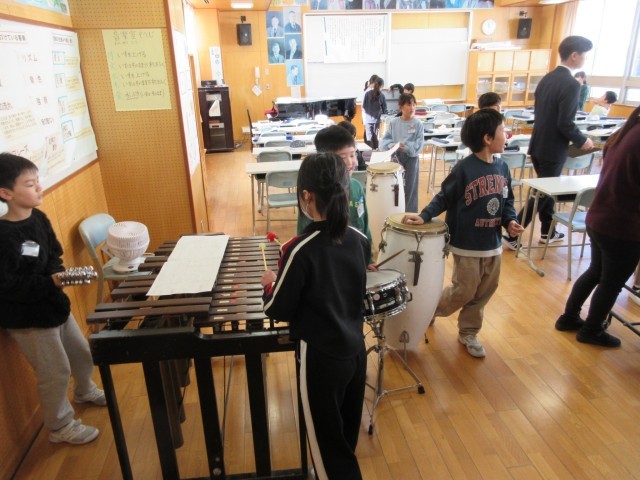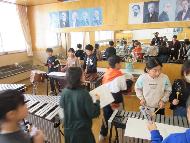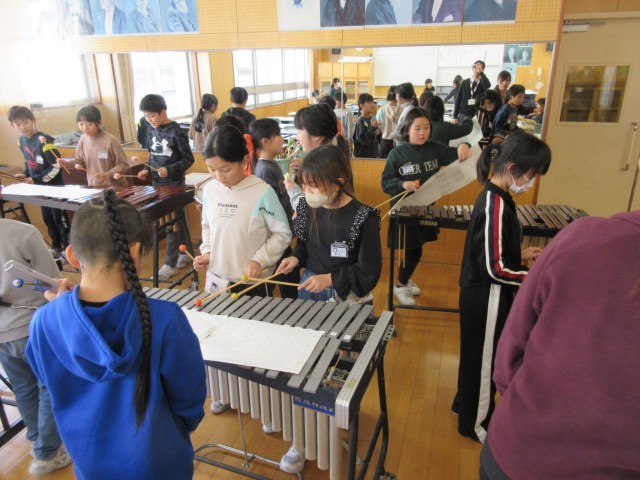 音楽科の学習で、楽器の合奏練習に取り組んでいます。