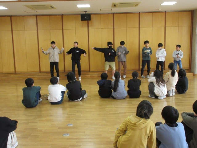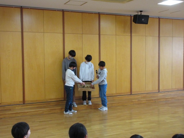 学級で集会を行っています。自分たちで色々面白いことを考えて楽しんでいます。