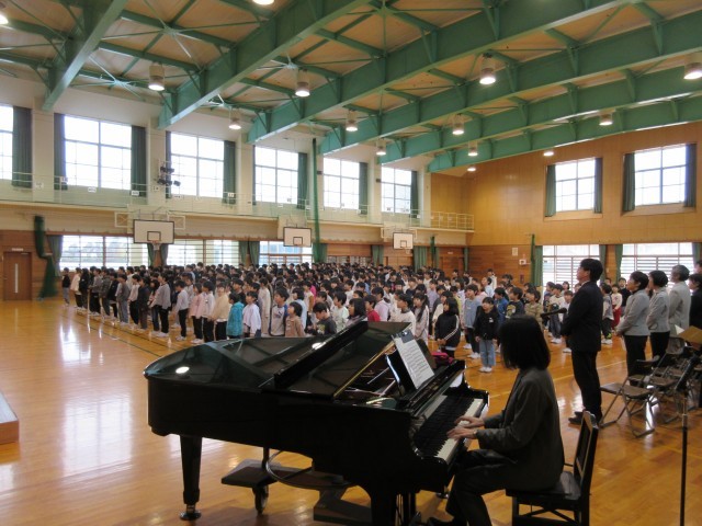 校長先生の話を真剣に聞き、2学期を振り返っています。