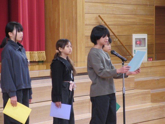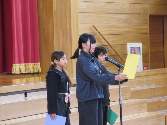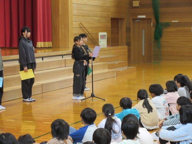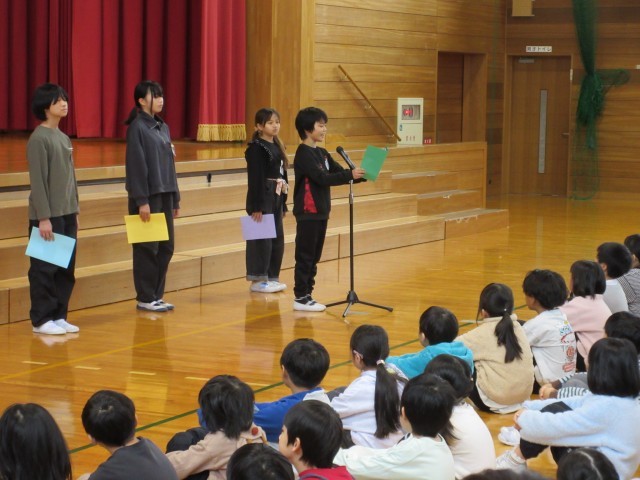 2学期の頑張りを4年生、6年生の代表が発表しています。