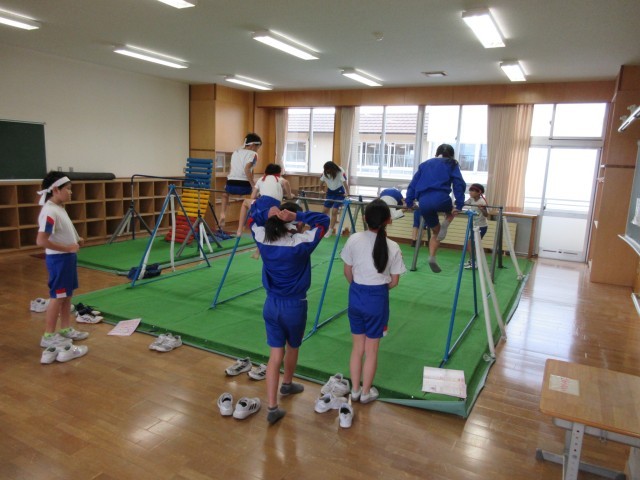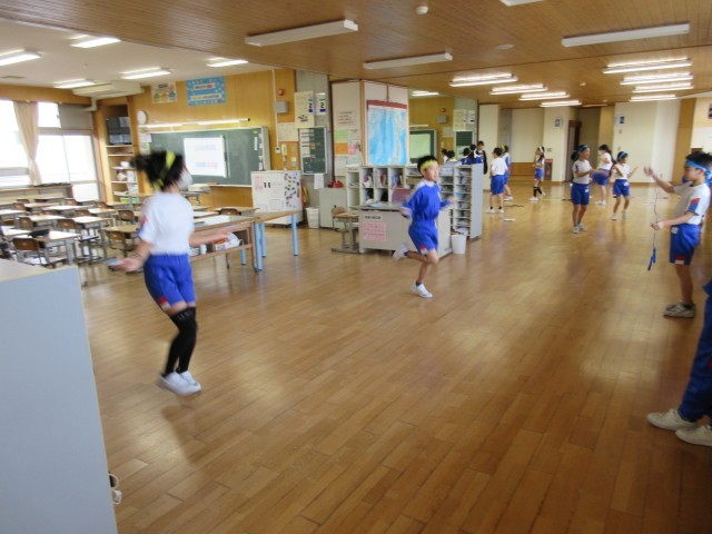 体育科の学習で、鉄棒や縄跳びに取り組んでいます。