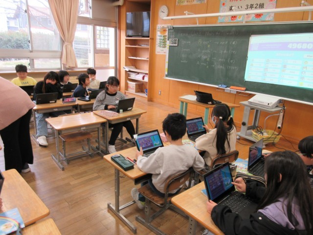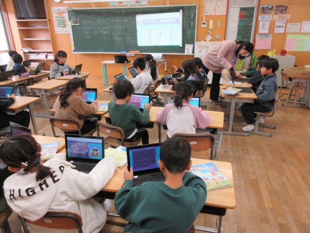 外国語活動で、ICT機器を使って学びを深めています。