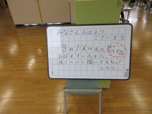 今日の朝も九九を言ってから教室に入っています。