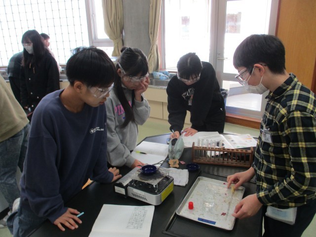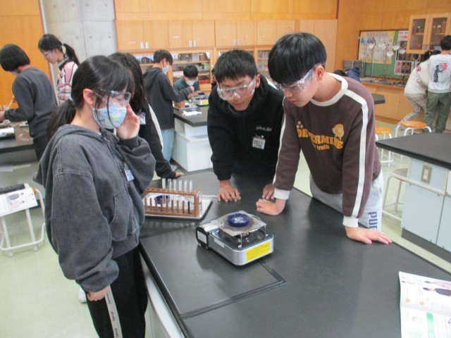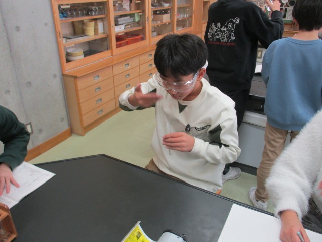 理科の学習では、水溶液の性質を調べています。5種類の水溶液について、見た目やにおい等を確かめました。