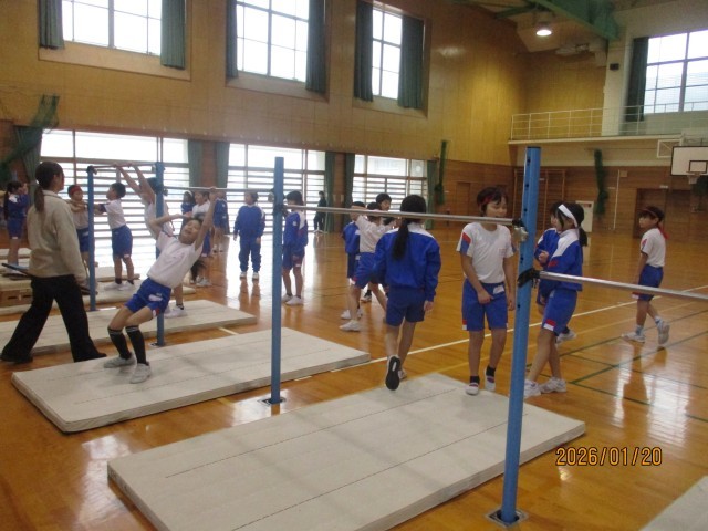 わざ7の鉄棒の練習に取り組んでいます。難易度の高い技にも果敢にチャレンジしています。