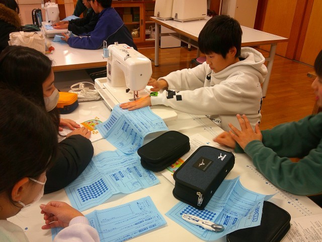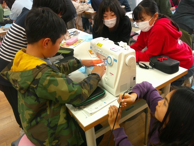 多くの子供たちにとって、初めて触ったミシン。ひとつひとつ学びながらがんばっています。