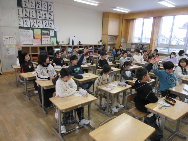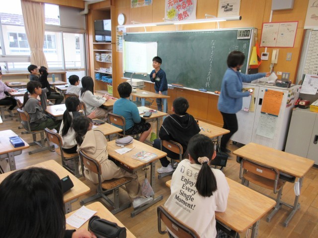 1限目の前半は双六や自己紹介クイズなどで交流を深めています。