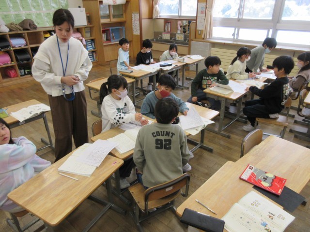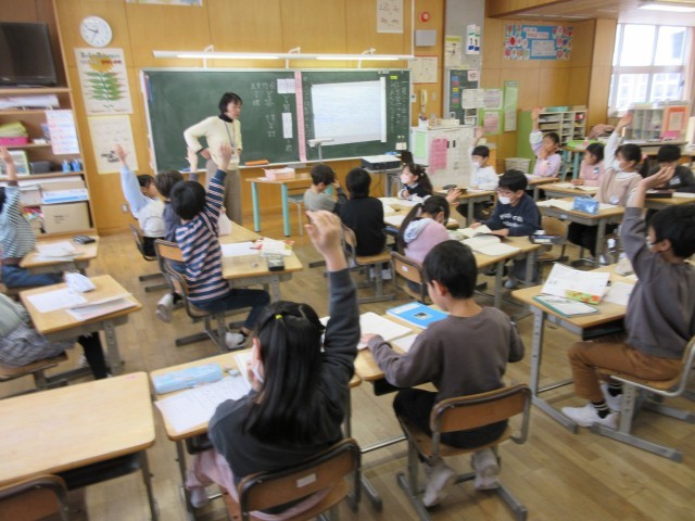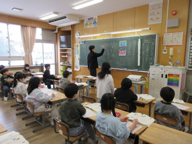 1限目は国語科の学習で、漢字クイズに取り組んでいます。