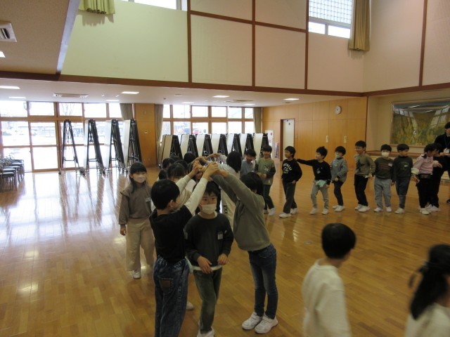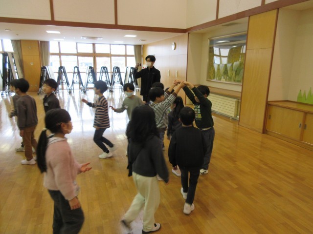 音楽科の学習で、学年全体で歌やゲームを楽しんでいます。