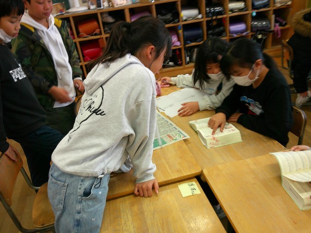 午前中、浜黒崎小学校の5年生と交流学習を行い、自己紹介やミニゲームや図工、国語をしました。みんなで考えたり、意見を出し合ったりしながら楽しんでいました。来年からは、同じ学校の仲間になります。力を合わせてがんばっていきましょう。